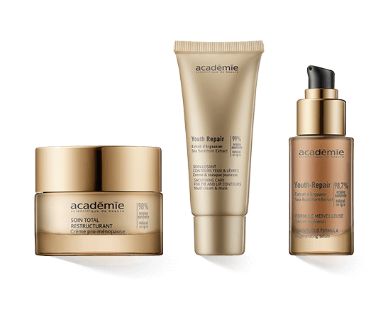 Für den zusätzlichen Schutz wurden Wirkstoffe ausgewählt, die bereits in ihrem Urzustand eine hohe Widerstandskraft aufweisen. Sanddorn gedeiht unter schwierigsten Bedingungen, erholt sich nach Rückschlägen und zeichnet sich durch seine Widerstandsfähigkeit und seinen hohen Gehalt an hautpflegenden Substanzen aus. Diese gebündelten Vorteile finden sich in allen Rezepturen von Académie Youth-Repair und werden in der Pflege um wohltuende Wellness-Effekte bereichert, die für Entspannung und ein natürliches Strahlen, ebenmäßigeren Teint und einen verjüngten Look sorgen.