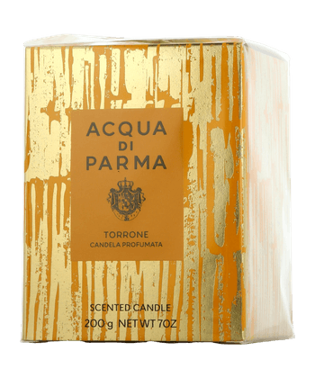 Acqua di Parma Torrone Room Fragrance Candle – sinnlich-wärmende Nostalgie im Kerzenschein. Ein zarter Duft aus geröstetem Zucker, honigsüssen Mandeln und weißem Nougat erfüllt den Raum mit der gemütlichen Stimmung italienischer Festtagskonfekte. Cremige Pistazie, Petitgrain und Sesamöl eröffnen das Bouquet, Orangenblüte und weisses Nougat schenken eine sanft süße Herznote. Vanille, Kakao und Ecomusk runden die Komposition mit weicher Tiefe ab. Die Kerze schafft ein behagliches, warmes Ambiente und lädt zu entspannten Abenden ein.