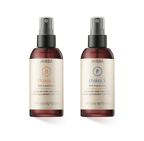 Für das Kraftchakra wirkt Aveda Chakra 3 Balancing Pure-Fume Mist Feel Intention. Um Wünsche und Ziele zu verwirklichen, unterstützt dieses Chakra eine starke Motivation und hilft, eine Richtung zu finden. Lavendel und Limettenblätter unterstützen den Duft. Der Aveda Chakra 4 Balancing Pure-Fume Mist Feel in Harmony ist für das Chakra des Herzens. Es hilft, Liebe, Empathie und Sympathie zu harmonisieren. Sandelholz, Mandarina und das Duftgras Palmarosa werden zu dem Duft verblendet. Die Kreativität unterstützt der Aveda Chakra 5 Balancing Pure-Fume Mist Feel Expressive. Das Chakra im Rachen hilft auch dabei, sich selber und seine Ideen besser auszudrücken und die Kommunikation zu optimieren. Es entsteht ein inneres Gefühl der Zuverlässigkeit und des Vertrauens, das nach außen hin noch leichter ausgedrückt werden kann. Der Duft enthält unter anderem Rosmarin, Ylang Ylang und Grapefruit.