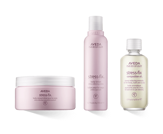 Das volle Aroma des Lavendels entfaltet die Aveda Stress-Fix Serie. Entspannung für Körper und Seele steht im Zentrum der Kollektion. Sie wurde auf Grundlage des Wissens der Aromatologie komponiert. Französischer Lavendel, die Untergattung Lavandin sowie Muskatellersalbei sind die drei Hauptkomponenten des beruhigenden Duftes. Dazu kommen je nach Produkt weitere Öle oder Pflanzenextrakte zum Pflegen und Nähren der Haut. Sie stammen aus kontrolliertem, biologischem Anbau und machen teilweise 99 Prozent der Pflegeformel aus. Sie haben positive Eigenschaften für die Haut und einen Relax-Duft. Der Stress des Alltags kann somit besser vergessen werden und es wird neue Energie geschöpft.