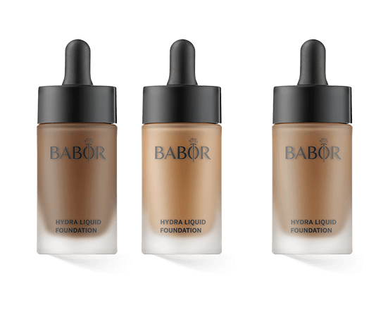Eine Auswahl der BABOR Hydra Liquid Foundation Nuancen: