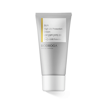 Um die Haut vor den Auswirkungen der Sonne und damit vor vorzeitiger Hautalterung zu schützen, verwendet Biodroga Medical Institute Sun ein UV-A/UV-B-Filtersystem. Dieses absorbiert die schädlichen Strahlen, die zu Zellschäden in der Haut führen können, was sich in Elastizitätsverlust, Trockenheit und Altersflecken äußert.