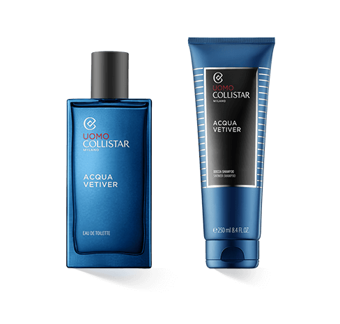 In einem kühlen, tiefen Blau präsentiert sich der Flakon von Collistar Acqua Vetiver. Eine mattschwarze Verschlusskappe krönt die massive Glasflasche und verleiht ihr schon auf den ersten Blick eine lässige Eleganz. Design, Form und Beschriftung folgen klaren Linien und verzichten auf optische Spielereien. Lediglich der Schriftzug Uomo - das italienische Wort für Mann - sticht durch seine rote Farbe deutlich hervor. Sportlich, zielstrebig und selbstbewusst - der Flakon des Duftes spricht eindeutig den modernen, urbanen Mann an. Auch die anderen Produkte der Duftserie, wie zum Beispiel das Shampoo Collistar Acqua Vetiver, sind in einem ähnlich starken Design in Blau und Schwarz gehalten und werden so zum Blickfang im Badezimmer.