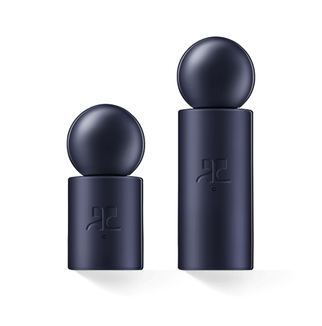 Der Flakon von Courrèges C strahlt eine große Ruhe und Eleganz aus. Eine große Kugel sitzt auf einem Zylinder. Beide sind aus blauem, halbtransparentem, satiniertem Glas. In der Mitte des Zylinders ist das Logo der Marke eingraviert, dort glänzt das Glas. Ein kleines "C" darunter zeigt den Namen des Parfums. Das dunkle, schimmernde Blau wirkt warm und kühl zugleich und fängt so die erfrischenden und warmen Noten des Duftes perfekt ein. Auch das Glas der Duftkerze ist in diesem geheimnisvollen Blau gehalten und bringt Anmut und Ruhe in jeden Raum.
