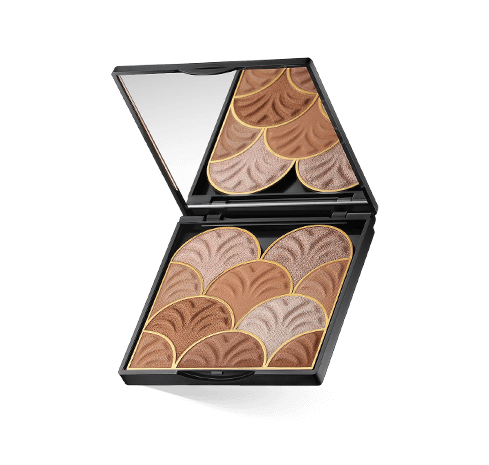 Das Fantasy Illuminating Face Powder von Delfy Cosmetics ist eine Palette für viele Zwecke. Zehn unterschiedliche Farben und Texturen dienen nicht nur als Highlighter, sondern auch als Lidschatten, Bronzer oder Gesichtspuder. Die Farben reichen von Weiß, über verschiedene Nude-Töne bis hin zu einem dunklen Karamellton. Die Palette enthält sowohl matte, als auch verschieden stark schimmernde Finishs.
