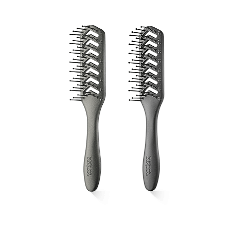 Denman ist seit mehr als 80 Jahren so etwas wie ein Synonym für ein sanftes und effektives Entwirren von langen Haaren. Diese Tradition wird durch die Denman Hyflex D200 Skeleton Vent Reihe fortgesetzt. Sie wird aus hochwertigem, robustem und bruchfestem Kunststoff hergestellt. Dadurch ist sie sehr leicht und absolut unempfindlich gegen Wasser, Stylingprodukte und Hitze. Ausgestattet mit großen Öffnungen im gesamten Bürstenkörper, ist die Skelettbürste sogar besonders gut für Hitzestylings geeignet. Denn sie lässt die Wärme zum Stylen gut durch, wodurch die Luftzirkulation beim Stylen und Trocknen der Haare erhöht wird. Und die Wärme wird bis an die Kopfhaut weitergeleitet. Gleichzeitig leitet sie überschüssige Hitze schneller wieder ab, was Haarschäden vorbeugt.