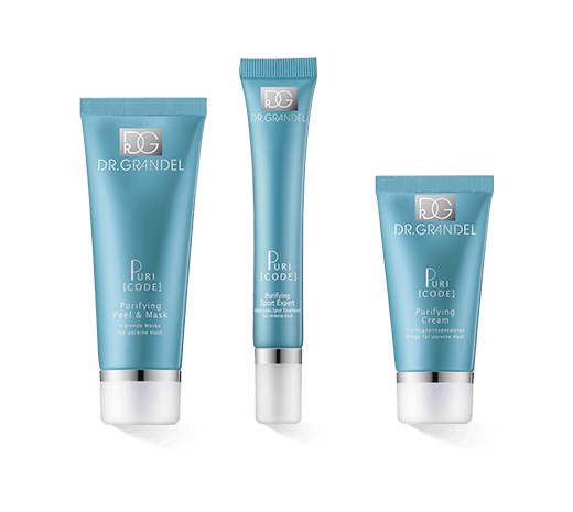 Jedes der Pflegegeprodukte leistet zudem einen spezifischen Beitrag für die Regeneration der Akne-Haut: Die Dr. Grandel Puricode Purifying Cream, konzipiert für die trockene Problemhaut, pflegt und schützt diese 24 Stunden. Sie reguliert ihren Feuchtigkeitsgehalt, um sie sichtbar zarter und beruhigter zu hinterlassen.