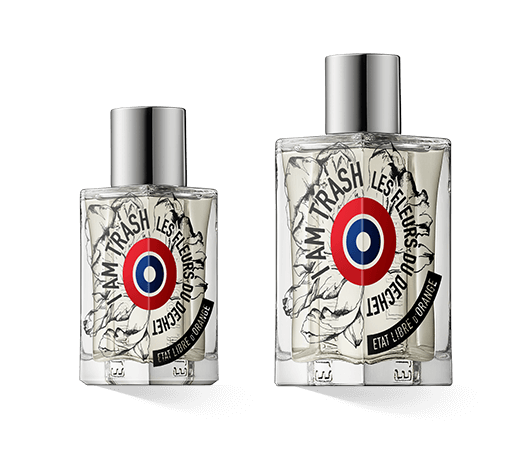 Während der Duft selbst mit seiner revolutionären Idee ganz klar neue Wege geht, ist der Flakon von Etat Libre d'Orange I Am Trash - Les Fleurs du Déchet eher klassisch gehalten. Etat Libre d'Orange setzt auch bei diesem aufregenden Recycling-Duft auf den bekannten Flakon in eckiger Form. Dieser ist aus kristallklarem Glas gefertigt und gibt den Blick auf die hell schimmernde Flüssigkeit im Inneren frei. Der Name des Parfums ist in großen schwarzen Lettern kreisförmig um das rot-blaue Logo des Parfumhauses angeordnet. Eine gezeichnete Blüte rundet das Design ab und setzt den provokanten Namen stilvoll visuell um. Die schlichte, silbern glänzende Verschlusskappe rundet den eleganten Flakon ab.