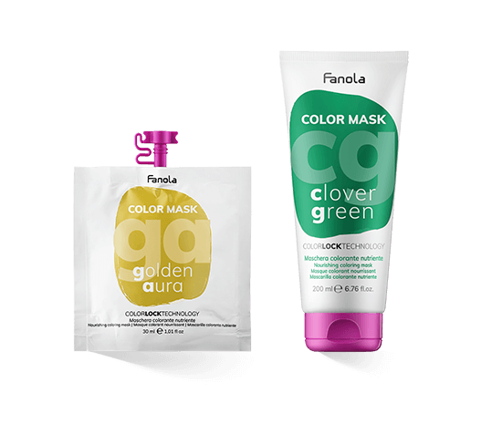 Die Fanola Color Mask ist in neun verlockenden Farbnuancen erhältlich, von Total Black über Sensual Chocolate, das rötliche Copper Flow und das blonde Golden Aura bis hin zu den bunten Nuancen Silky Purple, Pink Sugar, Red Passion, Ocean Blue und Clover Green. Sie ermöglichen das Nachtönen der Haare mit einzigartigen Effekten, denn sämtliche Masken sind miteinander kombinierbar. Die Fanola Color Masks bewahren ihren Glanz und ihr Farbergebnis für acht bis zehn Wochen.