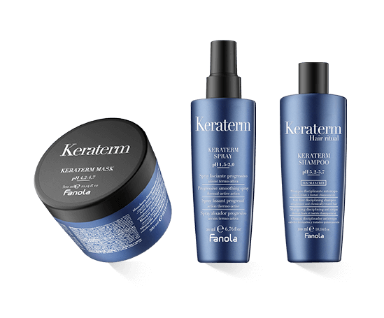 Die Fanola Keraterm Serie hilft, krauses Haar zu bändigen und wie gewünscht zu stylen. Die Kombination aus Reinigungsprodukten und Styling bildet ein übersichtliches und wirksames Ritual, um die Haare anhaltend zu glätten. Daher kann die Serie begleitend verwendet werden, wenn das Haar mithilfe chemischer Produkte dauerhaft geglättet worden ist. Ebenso ist die Pflege gut geeignet, wenn die Haare dank Stylingtools durch Wärme geglättet werden.