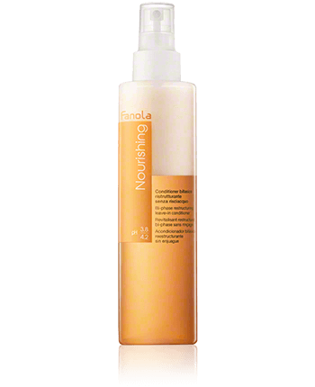 Der Fanola Nourishing Bi-Phase Restructuring Leave-In Conditioner hilft gegen trockenes Haar und Spliss. Der Conditioner hydratisiert die Haare und entwirrt sie. Er ist angereichert mit Keratin und Milchprotein, die das Haar seidig machen und es wieder beleben. Das Produkt ist in die Haare zu sprühen und einzumassieren. Danach sollten sie durchgekämmt werden. Der Leave-In Conditioner ist nicht auszuspülen.