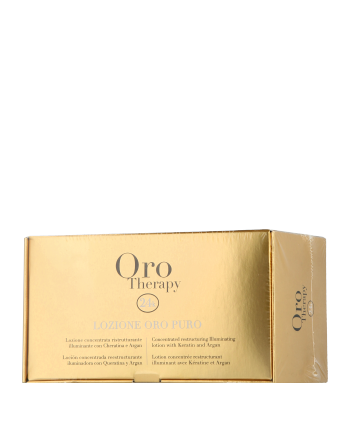 Bis tief in die Haarstruktur kräftigtes und repariertes Haar - Die Fanola Oro Therapy 24K Lotion Oro Puro ist eine tiefenwirksame Haarkur in zwölf Ampullen. Die Lotion mit Arganöl hilft dem Haar, sich zu regenerieren. Sie entwirrt es und macht es herrlich seidig und geschmeidig. Frizz hat mit der Lotion keine Chance. Für sehr trockenes und strapaziertes Haar.