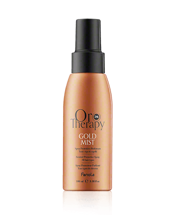 Der Fanola Oro Therapy Gold Mist ist ein Schutzspray, das sich zum Auffrischen des Looks und zur Pflege nach dem Styling und den ganzen Tag anwenden lässt. Die leichte Textur legt sich als hauchzarter Film um die Haare und bietet ihnen wirksamen Schutz gegen schädliche Einflüsse und Schwermetalle, während es zugleich einen anziehenden Glanz verleiht.