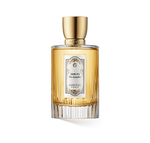 Goutal Sables erschien 1985 auf dem Markt. Seitdem wurde der Flakon weiterentwickelt. Das Ursprungsfläschchen war ein klassischer Flakon mit klaren Linien, einer glatten, runden Schutzkappe und einem aufwendig dekorierten Etikett. Heute hat der Flakon einen runden Aufbau. Das transparente Glas ist unten mit einem Relief aus Längsrillen versehen, die nach oben auslaufen. Die goldglänzende Schutzkappe ist mit dem Namen Goutal versehen und verleihen dem Flakon Eleganz. Das Etikett besticht nach wie vor mit aufwendigem Dekor aus Gold und Schwarz, das den Namen des Parfums, der Parfümeurin und das Logo des Labels zeigt. Der Flakon ist ein Sinnbild für immerwährenden Stil und dem nostalgischen Sehnen nach einer besseren Zeit.