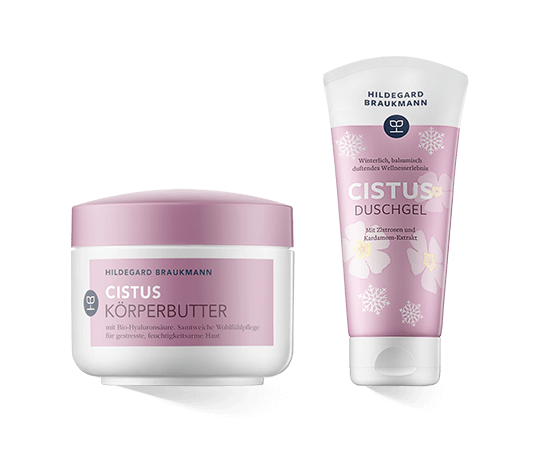 Die Hildegard Braukmann Cistus ist eine winterliche Pflegeserie für trockene oder gestresste Haut. Der Wetterumschwung zu kalten Temperaturen kann auch normale Haut aus dem Gleichgewicht bringen. Große Kälte und Nässe sowie sehr trockene Heizungsluft in Innenräumen führt schnell zu trockenen Hautstellen. Eine reichhaltigere Pflege unterstützt die Haut. Cistus hat dabei einen balsamischen, wohltuenden Duft. Grüner Kardamom und Zistrose steuern das entspannende Aroma bei. Dabei wirken die botanischen Extrakte zugleich auch pflegend. Die Zistrose stammt aus Montpellier. Ihre Aromamoleküle können den Körper stimulieren, das so genannte Wohlfühlpeptid freizusetzen. Beta-Endorphin kann helfen, die Stimmung zu heben, so dass ein wahrer Entspannungsmoment entsteht. Kardamom ist reich an Antioxidantien.