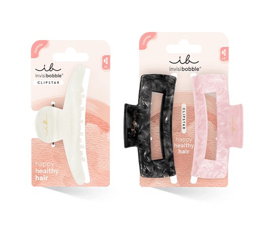 Die Invisibobble Clipstar Clawdia und Petit Four bestechen durch ihre Funktionalität und ihr Aussehen. Die Haarclips bestehen aus farbechtem Kunstharz, das nicht abfärbt. Das Material ist langlebig, wasserfest, leicht zu reinigen und schweißresistent. Die Kanten der Clips sind sanft abgerundet. So gibt es keine scharfen Kanten, die das Haar beschädigen könnten. Darüber hinaus ist der Invisibobble Clipstar völlig intuitiv zu bedienen, denn man braucht nur zwei Finger, um einen der Clips zu öffnen und wieder zu schließen. Sei es der Invisibobble Clipstar Clawdia oder der Petit Four.