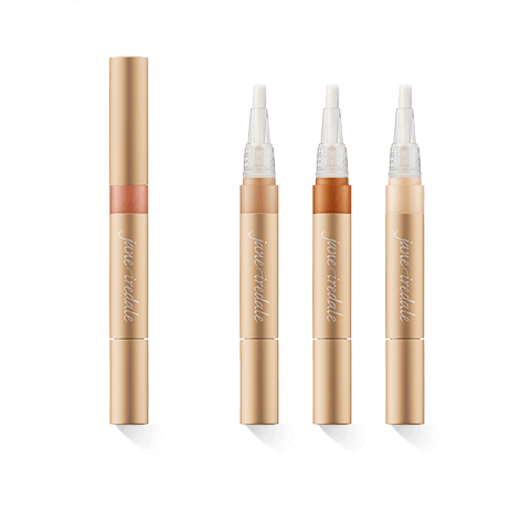 Eine kleine Menge der Concealer aus der Jane Iredale Active Light Serie genügt, um die volle Wirkung zu erhalten. Um eine Überdosierung zu vermeiden, werden die Concealer in Tüllen abgefüllt, die eine punktgenaue Dosierung ermöglichen. Die Tülle ist in ein luxuriöses Mattgold gehüllt. Am unteren Ende befindet sich eine Kappe, die mit einer Drehung die kostbare Concealer-Creme freisetzt. Am oberen Ende der Tülle befindet sich ein größenabgestimmter Pinsel. Für ein präzises Auftragen wird in dessen Mitte der Concealer ausgestoßen. Eine ebenso mattgoldene Schutzkappe verhüllt den Pinsel. In der Mitte der Tülle steht in weißen Lettern der Name Jane Iredale.