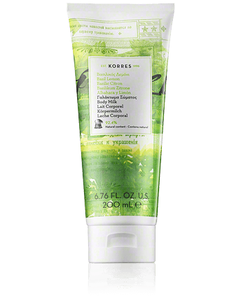 Die Korres Body Care Basil Lemon Body Milk vereint den würzigen Duft von frischem Basilikum mit der Spritzigkeit von Zitrone. Die Formel ist reich an Spurenelementen und Vitaminen, darunter C, E und Provitamin B5. Shea Butter und Jojobaöl verwöhnen die Haut und halten sie geschmeidig. Da die Produkte von Korres frei von vielen Zusätzen wie Mineralöl, Silikonen und Parabenen sind, sind sie gut verträglich.