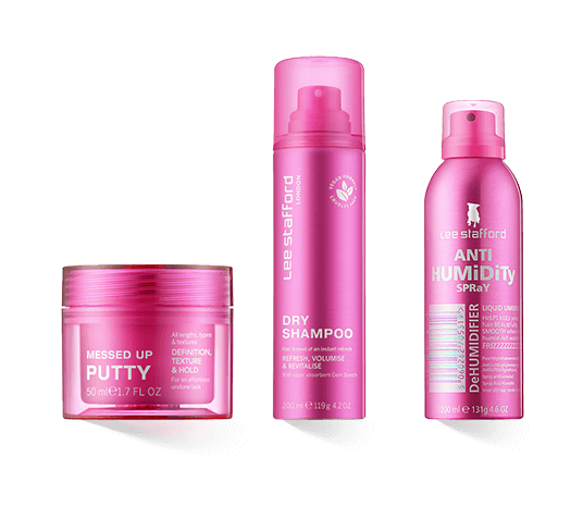 Die Lee Stafford Styling & Finish Reihe vereint die Stylingprodukte des britischen Friseurs. Sie haben das markante neonpinke Design und sind so leicht zu erkennen. Es gibt für verschiedene Haarlängen, Haartypen sowie Stile die passenden Produkte.
