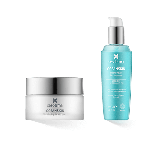 Die Basis der Sesderma Oceanskin Serie bildet die Nourishing Facial Cream. Die pflegende Gesichtscreme verschmilzt mit der Haut, macht sie weich und geschmeidig und versorgt sie mit intensiver Feuchtigkeit. Wertvolle marine Wirkstoffe glätten und straffen die Haut, reparieren und regenerieren sie und verbessern das Hautbild. Noch intensivere Feuchtigkeit spendet das Moisturizing Serum. Das leichte Serum bietet maximale Hydratisierung, reduziert Falten und feine Linien sichtbar, kräftigt die Haut und verleiht ihr einen gesunden, strahlenden Glow. Komplettiert wird die die feuchtigkeitsspendende Beauty-Routine vom Sesderma Oceanskin Cleansing Gel. Das innovative Reinigungsgel mit Drei-Phasen-Technologie verschmilzt bei Kontakt mit der Haut zunächst zu einem sanften Öl und entwickelt sich dann zu einem seidigen Schaum. Der Cleanser befreit die Haut gründlich von Make-up und Verunreinigungen und spendet ihr zugleich intensive Pflege. Ideal für alle, die es schnell und unkompliziert lieben.